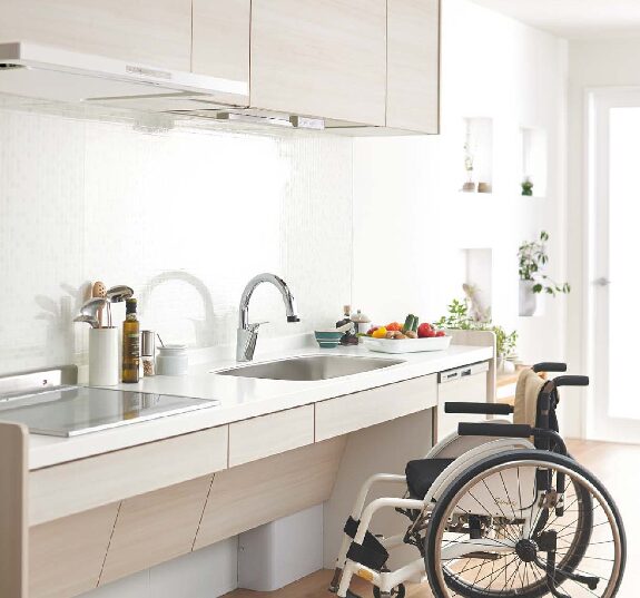 海老名でキッチンリフォームを考える方にとって、「座って料理ができるキッチン」は体への負担を減らし、安全性と快適性を高める選択です。LIXIL の Well Life(ウエルライフ)、パナソニック「エイジフリープラン/車いす対応プラン)などは、ワークトップの高さ調節、広い膝下スペース、浅型シンク、リモコン・タッチレスなどの便利機能を備えており、「座った姿勢」での調理が無理なくこなせるよう設計されています。