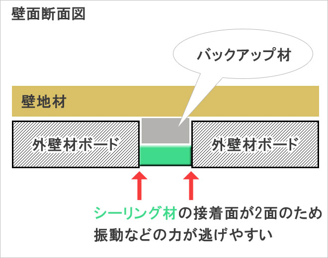 サイデイングボード材12mm – バックアップ材5mm=シーリング材7mm←耐久性不足