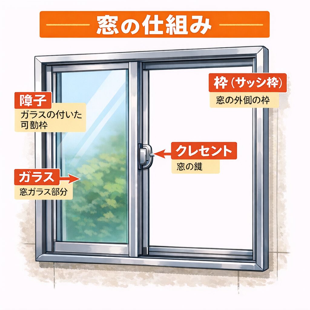 一般的な住宅の窓は次のような構造になっています。