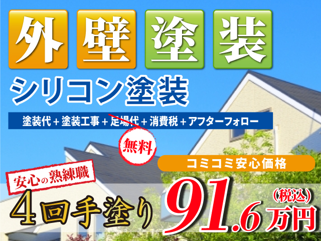 91,6万円(税込)から、足場代143,000円(税込)をお値引き!!