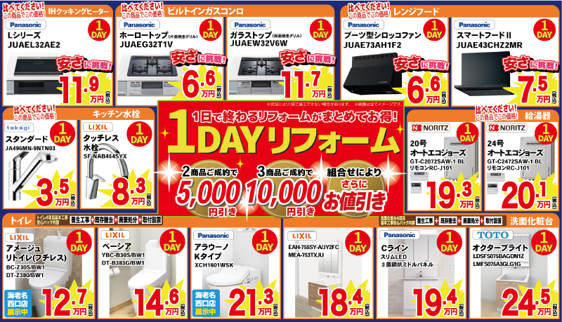 1日で終わるリフォームがまとめてお得!