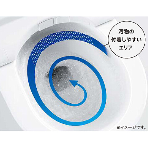 渦を巻くようなトルネード洗浄が、少ない水で効率的に洗浄します。汚物が付着しやすい便器後方に勢いよく水が当たるので、汚れをしっかり洗い流します。