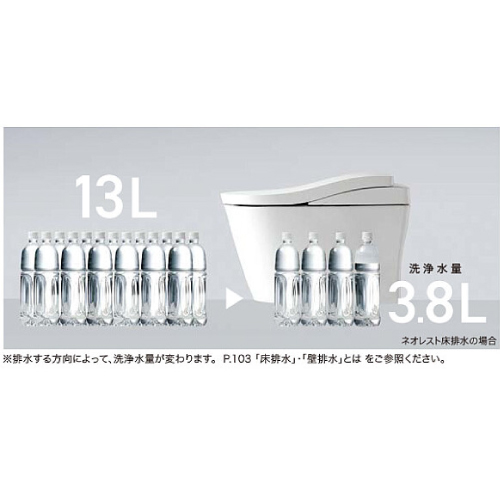 ネオレストは1回当たりの洗浄水量わずか3.8Lの超節水を実現(床排水の場合。壁排水は4.8L)。従来品(※1)と比べて年間約15,100円オトクに!毎日ふつうに使っているだけで、いつの間にか大きな節約効果があります。